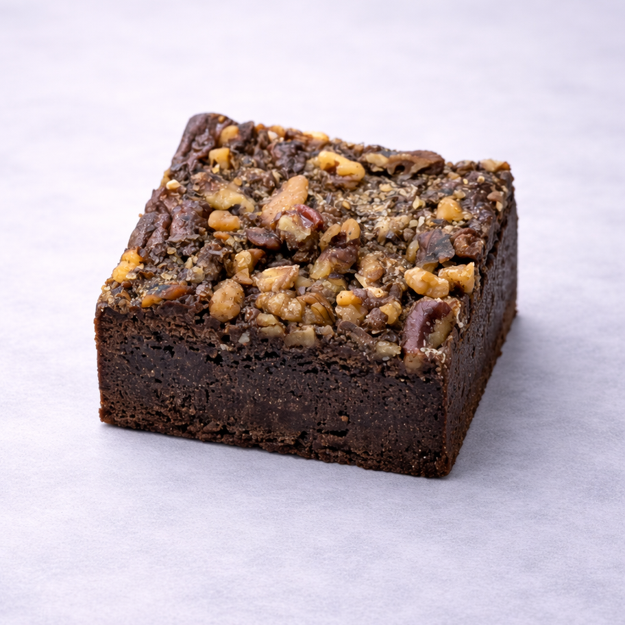 Brownie fondant au chocolat, enrichi de courgette pour plus de moelleux, avec noix.